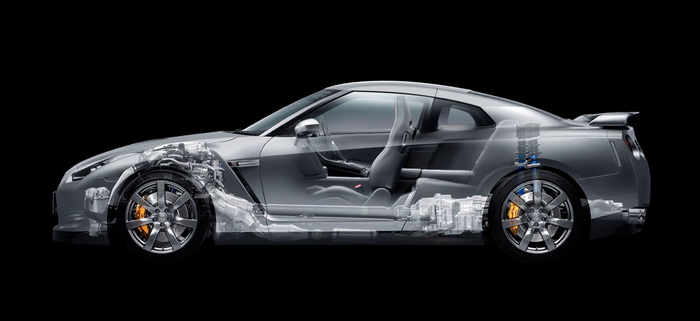 แน่นอนว่าหัวใจสำคัญของเจ้า GT-R (R35) คือเรื่องสมรรถนะที่ถูกตั้งโจทย์มาให้เป็นรถที่ออกมาปราบซูเปอร์คาร์จากฝั่งยุโรป ดังนั้นเครื่องยนต์ ระบบส่งกำลัง และระบบต่างๆ ต้องเป็นที่สุด หัวใจของ GT-R (R35) เป็นเครื่องยนต์ V ตัวใหม่ของ Nissan รหัส VR38DETT ความจุ 3,799 ซีซี รูปแบบ V โดยตัวเครื่องยนต์มีขนาดสั้นกว่าเครื่อง V ทั่วๆไป มีการนำระบบหล่อลื่นเครื่องยนต์แบบใหม่มาใช้เป็นทั้งแบบ Wet Sump และ Dry Sump ชิ้นส่วนภายในเครื่องยนต์ไม่ว่าจะเป็นลูกสูบหรือเสื้อสูบผ่านกรรมวิธีการผลิตเพื่อให้ทำงานได้อย่างไหลลื่นที่สุด ติดตั้งเทอร์โบชาร์จสองตัวแบบ Parallel จาก IHI รุ่น RHF55 ที่ทดสอบแล้วว่าเหมาะกับเครื่องตัวนี้ที่สุด