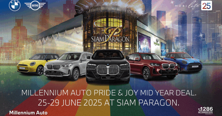 บริษัท มิลเลนเนียม ออโต๊กรุ๊ป จำกัด ผู้จำหน่ายรถยนต์บีเอ็มดับเบิลยู, มินิและมอเตอร์ไซค์บีเอ็มดับเบิลยูมอเตอร์ราดอย่างเป็นทางการในเครือ MGC-ASIA จัดแคมเปญพิเศษ ‘PRIDE & JOY MID YEAR DEAL’ ยกขบวนยนตรกรรมหรูสุดพรีเมียมส่งตรงใจกลางกรุงเทพฯระหว่างวันที่ 25-29 มิถุนายน 2568 ณแฟชั่นฮอลล์ชั้น 1 ศูนย์การค้าสยามพารากอนหรือรับข้อเสนอพิเศษได้ตลอดเดือนที่โชว์รูมมิลเลนเนียมออโต้ทุกสาขาทั้งในกรุงเทพฯคือพระราม 4, ลาดพร้าว, พระราม 3, พัฒนาการ-ศรีนครินทร์, สยามพารากอน, ไอคอนสยามและมินิเอกมัยรวมถึงต่างจังหวัดคืออุบลราชธานี, หาดใหญ่, ภูเก็ตและสุราษฎร์ธานี