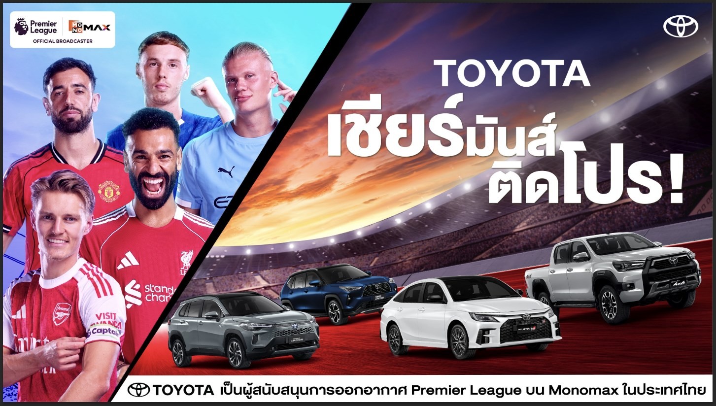 ซึ่งเกมการชิงไหวชิงพริบนี้ TOYOTA เล่นใหญ่ขึ้นไปอีก โดยเสนอตัวมีส่วนร่วมกับฟุตบอลอังกฤษ ซึ่งล่าสุด โตโยต้า มอเตอร์ ประเทศไทยประกาศความร่วมมือกับ Monomax เพื่อถ่ายทอดสดฟุตบอลพรีเมียร์ลีกอังกฤษ และเอมิเรตส์ เอฟเอ คัพ ให้แฟนบอลไทยได้ดูฟรี 44 แมตช์ผ่านช่อง MONO29 และเข้าถึงแพ็กเกจเต็มความคมชัดได้เพียงเดือนละ 299 บาท ผ่านแคมเปญ “เชียร์มันส์ ติดโปร” มอบ แถมยังมอบส่วนลด 2,000 บาท สำหรับลูกค้า TOYOTA ที่จองและรับรถภายใน 60 วัน (จำนวน 5,000 สิทธิ์ รวมมูลค่ากว่า 10 ล้านบาท) เพื่อกระตุ้นยอดขายควบคู่ไปกับความสนุกของฟุตบอลอังกฤษ