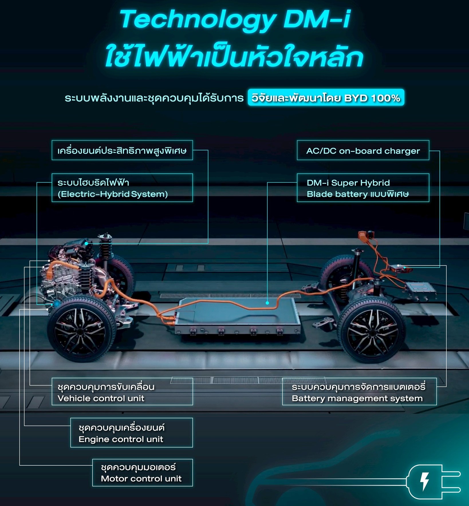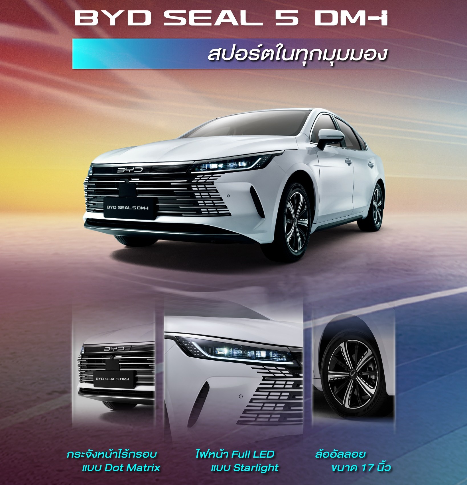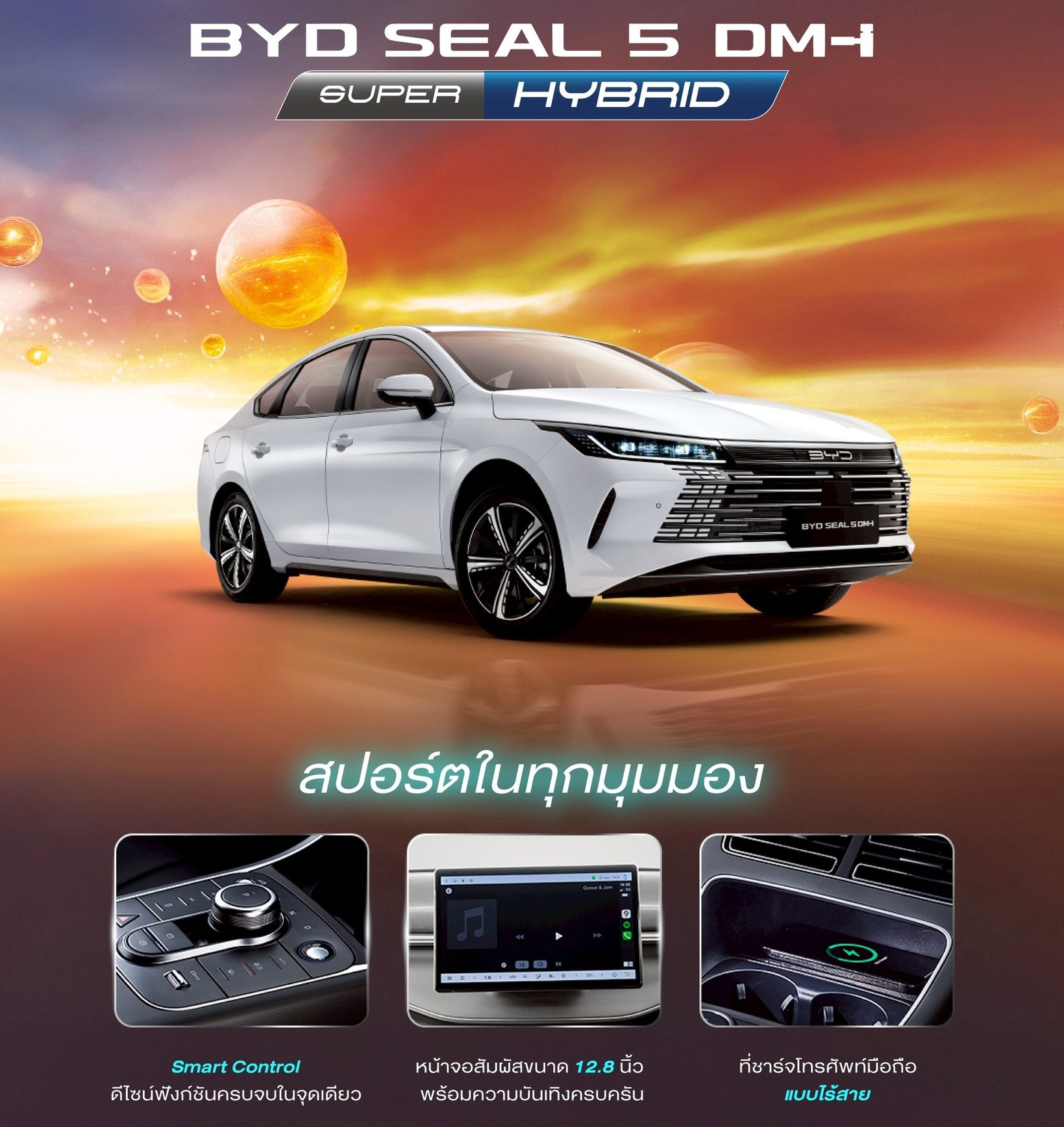 สำหรับ BYD SEAL 5 DM-i SUPER HYBRID เป็นรถปลั๊กอินไฮบริด (PHEV) ซีดานขนาดกลาง ขุมพลังปลั๊ก-อินไฮบริด (PHEV) แบบ DM-i SUPER HYBRID สามารถเร่งจาก 0-100 กม./ชม. ได้ในเวลาเพียง 7.5 วินาที ชุดมอเตอร์ไฟฟ้าหน้า 145 กิโลวัตต์ แรงบิดสูงสุด 300 นิวตัน-เมตร ทำงานร่วมกับเครื่องยนต์เบนซิน Xiaoyun 1.5L Atkinson Cycle ให้กำลังสูงสุด 72 กิโลวัตต์ และแรงบิดสูงสุด 122 นิวตัน-เมตร โดยเมื่อทำงานร่วมกันแล้วให้กำลังสูงสุด 218 แรงม้า แรงบิด 300 นิวตัน-เมตร มีอัตราสิ้นเปลืองน้ำมันที่น่าทึ่งเพียง 3.8 ลิตรต่อ 100 กิโลเมตร พร้อมเทคโนโลยีขับเคลื่อนด้วย Blade Battery เอกสิทธิ์เฉพาะจาก BYD ทำให้สามารถวิ่งด้วยไฟฟ้าล้วนได้ไกลถึง 120 กิโลเมตร (ตามมาตรฐาน NEDC)