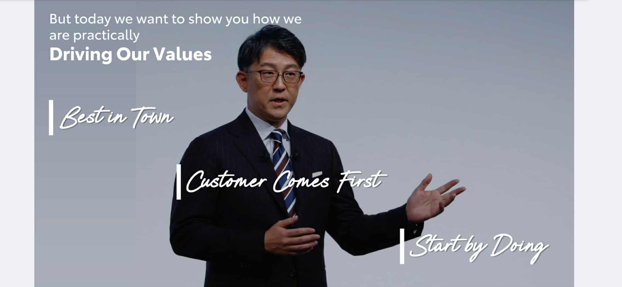 โตโยต้ามุ่งมั่นตอบสนองความต้องการที่หลากหลายของลูกค้าในเอเชียได้ภายใต้หลักการ 3 ประการ ได้แก่ “ดีที่สุดในเมือง(Best in Town)” “ลูกค้ามาก่อน(Customers Comes First)” และ “เริ่มต้นด้วยการลงมือทำ(Start by Doing)”