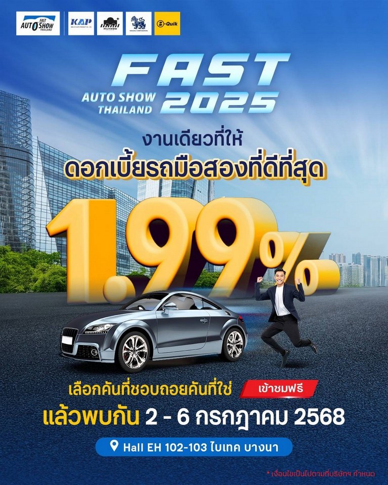 รวมโปรโมชั่นเด็ดโดนใจในงาน “ฟาสต์ ออโต โชว์ ไทยแลนด์ 2025” ทั้งรถใหม่ป้ายแดงและรถใช้แล้วคุณภาพดี ครบทุกเซ็กเมนต์ ครอบคลุมทุกทางเลือกด้านพลังงาน ที่มาพร้อมข้อเสนอพิเศษจัดเต็มทุกดีล ดาวน์น้อย-ผ่อนสบาย ดอกเบี้ยต่ำ-ส่วนลดพิเศษ ของแถม-ของแจก และการรับประกันหลังการขายสุดคุ้ม ร่วมค้นหา “รถคันที่ใช่” ไว้ใช้งาน ภายใต้เงื่อนไขที่ดีสุดในงาน “ฟาสต์ ออโต โชว์ ไทยแลนด์ 2025” ตั้งแต่วันนี้ – 6 กรกฎาคม ณ ฮอลล์ 102-103 ไบเทค บางนา เข้าฟรี! 10.00 – 21.00 น.