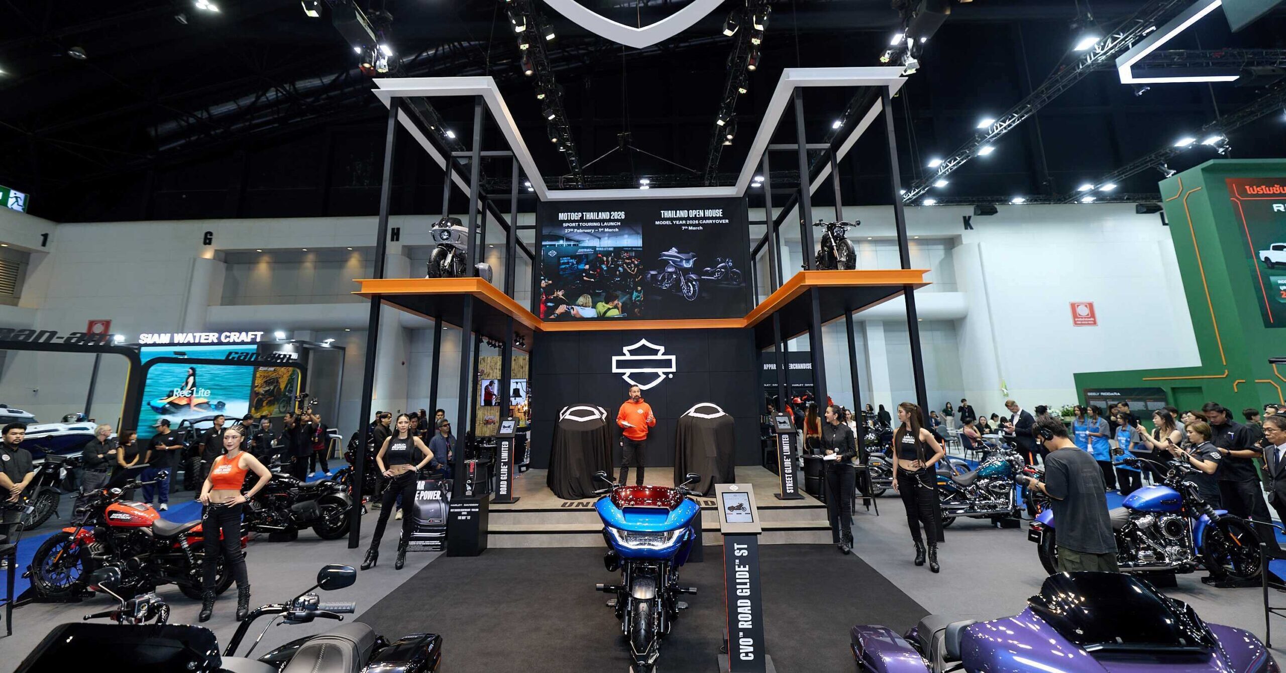 ภายในงานบางกอก อินเตอร์เนชั่นแนล มอเตอร์โชว์ ปีนี้ Harley-Davidson เปิดตัวไลน์อัปมอเตอร์ไซค์รุ่นใหม่ล่าสุดปี 2026 ทั้งหมด 7 รุ่นเป็นครั้งแรกในประเทศไทย พร้อมการเปลี่ยนแปลงครั้งสำคัญในตระกูล Grand American Touring, Custom Vehicle Operation (CVO), Cruiser, Sport และ Adventure Touring โดยมอเตอร์ไซค์ทุกรุ่นที่นำมาจัดแสดงในครั้งนี้สะท้อนการก้าวข้ามขีดจำกัดทั้งด้านสมรรถนะ เทคโนโลยี และสไตล์ได้อย่างเต็มรูปแบบ พร้อมเปิดโอกาสให้ผู้เข้าชมงานได้เป็นกลุ่มแรกในภูมิภาคที่มีโอกาสสัมผัสมอเตอร์ไซค์รุ่นใหม่ของ Harley-Davidson อย่างใกล้ชิด โดยมี