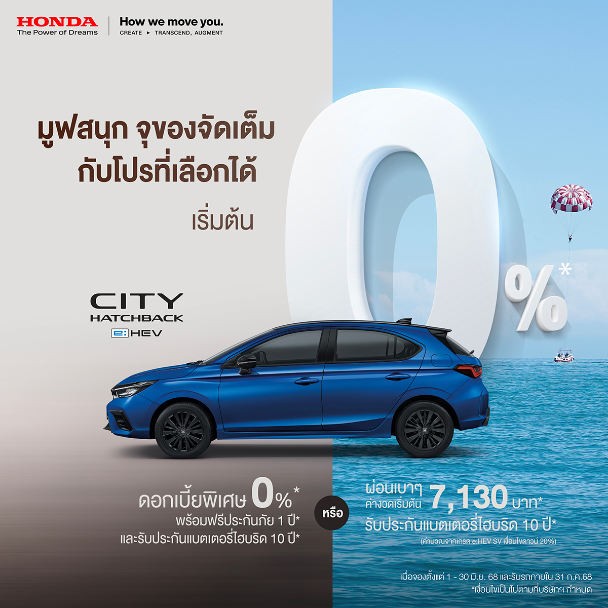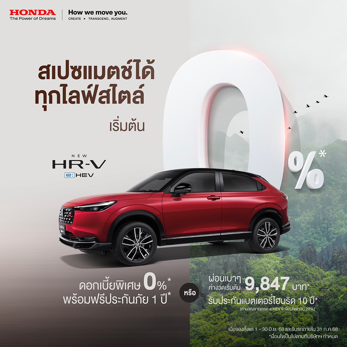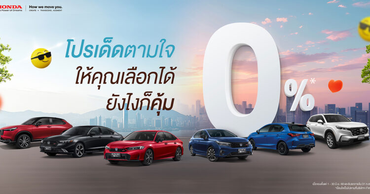 บริษัท ฮอนด้า ออโตโมบิล (ประเทศไทย) จำกัด ส่งโปรโมชันพิเศษกลางปีสุดคุ้มค่า รับดอกเบี้ย 0% ผ่อนชิลๆพร้อมฟรีประกันภัยฟรี Honda Exclusive Care แพ็กเกจสุดคุ้มครอบคลุมตั้งแต่วันออกรถใหม่ยาวสูงสุด 5 ปีรับประกันอายุการใช้งานแบตเตอรี่ไฮบริด 10 ปีรถเก่าแลกซื้อรถใหม่รับสิทธิพิเศษเพิ่มเติมสูงสุดถึง 100,000 บาทสำหรับลูกค้าที่จองตลอดเดือนมิถุนายน รับรถภายใน 31 กรกฎาคม 2568