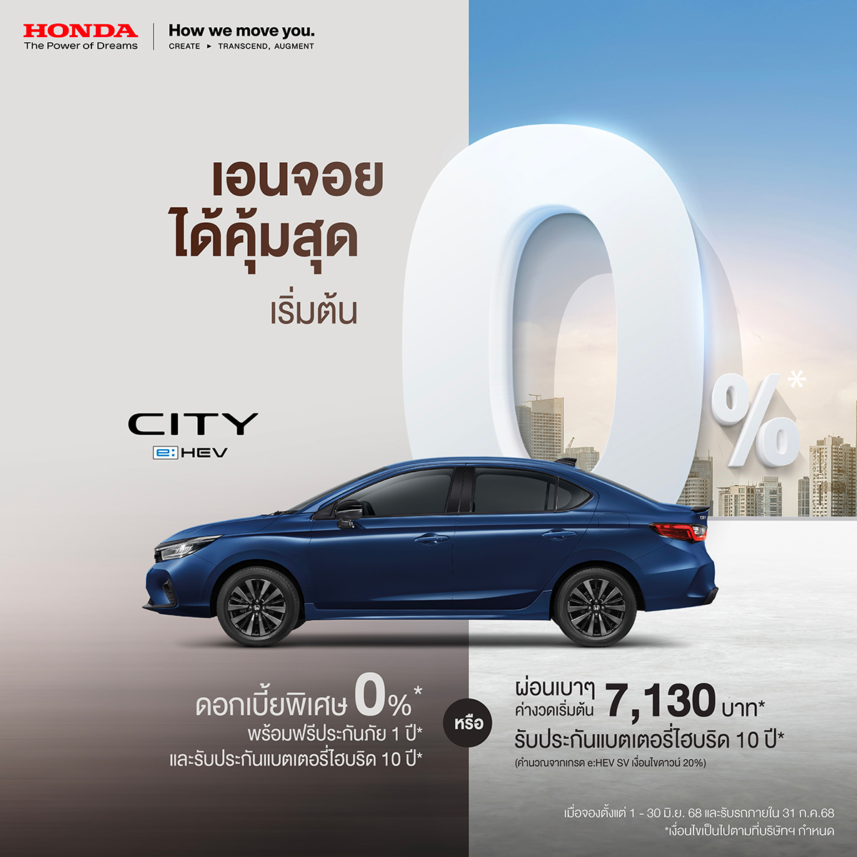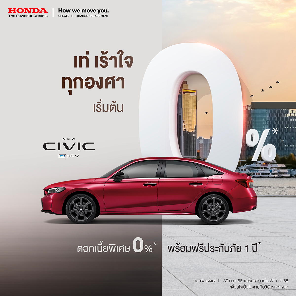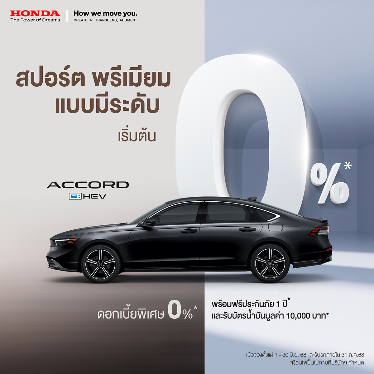บริษัท ฮอนด้า ออโตโมบิล (ประเทศไทย) จำกัด ส่งโปรโมชันพิเศษกลางปีสุดคุ้มค่า รับดอกเบี้ย 0% ผ่อนชิลๆพร้อมฟรีประกันภัยฟรี Honda Exclusive Care แพ็กเกจสุดคุ้มครอบคลุมตั้งแต่วันออกรถใหม่ยาวสูงสุด 5 ปีรับประกันอายุการใช้งานแบตเตอรี่ไฮบริด 10 ปีรถเก่าแลกซื้อรถใหม่รับสิทธิพิเศษเพิ่มเติมสูงสุดถึง 100,000 บาทสำหรับลูกค้าที่จองตลอดเดือนมิถุนายน รับรถภายใน 31 กรกฎาคม 2568