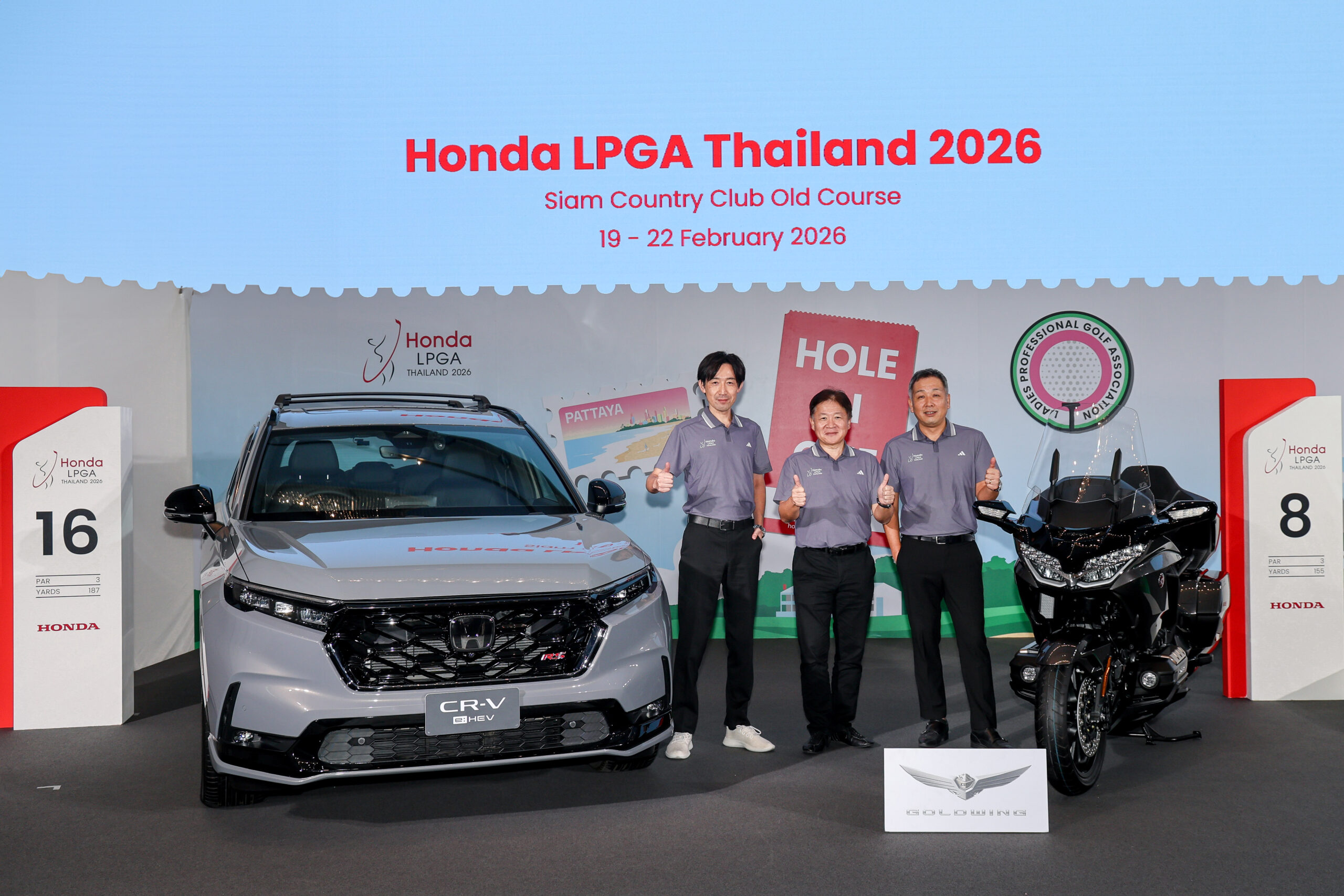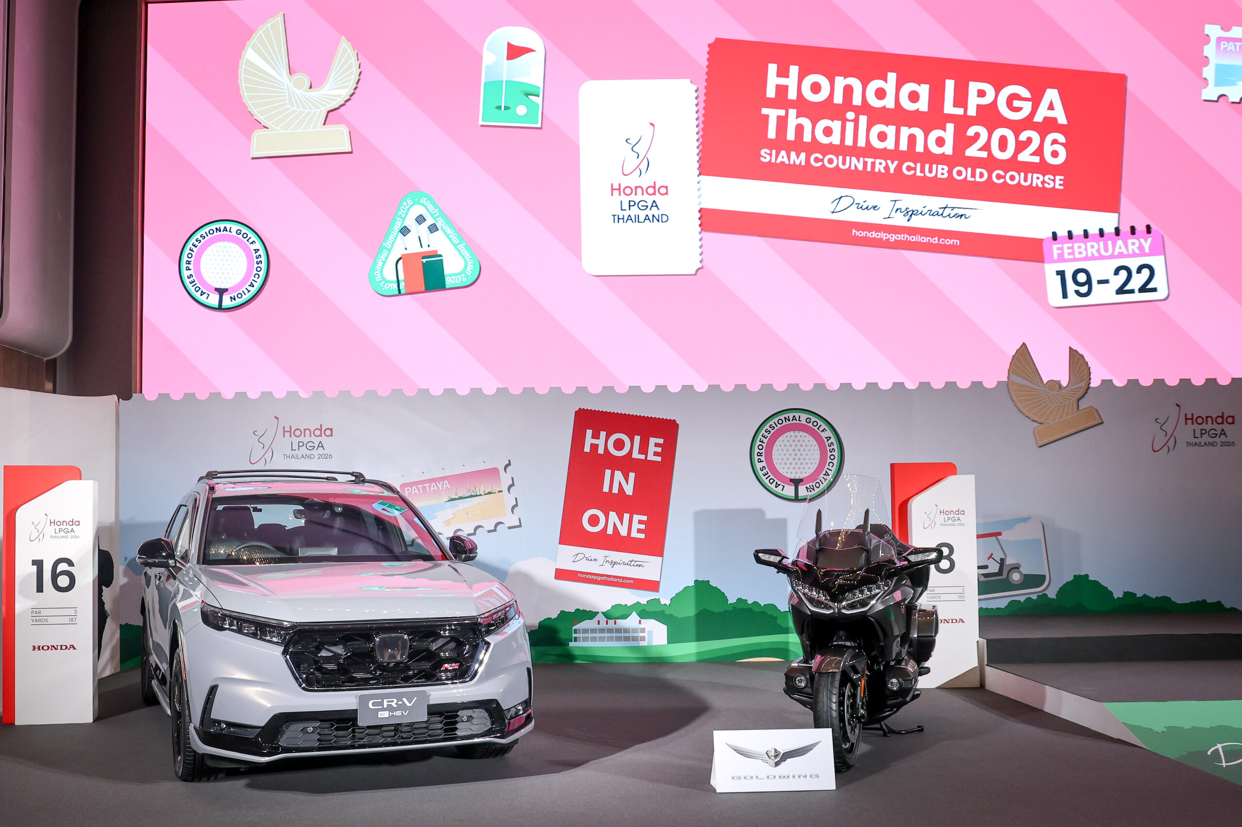 พร้อมเพิ่มความเข้มข้นด้วยการลุ้นรางวัลโฮลอินวันสุดพิเศษที่หลุม 8 เป็นรถจักรยานยนต์ Honda GoldWing มูลค่า 1,355,000 บาท และที่หลุม 16 เป็น รถยนต์ Honda CR-V e:HEV ใหม่รุ่น e:HEV RS พร้อมชุดอุปกรณ์ตกแต่ง Modulo รวมมูลค่า 1,863,220 บาท