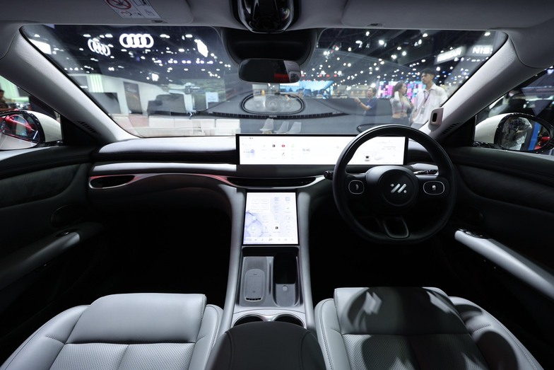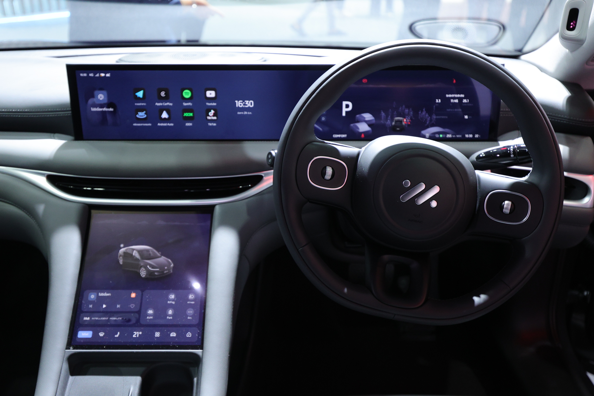 MG IM5 โดดเด่นด้วยดีไซน์สปอร์ตคูเป้ซีดาน ที่ได้รับการออกแบบด้วยเส้นสายที่โฉบเฉี่ยว สะกดทุกสายตา มาพร้อมกระจกรอบคันแบบ Acoustic Glass 2 ชั้นช่วยลดเสียงรบกวนจากภายนอกได้อย่างมีประสิทธิภาพ เสริมความสปอร์ตด้วยล้ออัลลอยขนาด 20 นิ้ว ภายในห้องโดยสารได้รับการออกแบบอย่างประณีต มาพร้อมหน้าจออัจฉริยะ Intelligent Immersive Touch Screens ประกอบด้วยหน้าจอแสดงผลดิจิทัลขนาด 26.3 นิ้ว และหน้าจอกลางแบบสัมผัสขนาด 10.5 นิ้ว เบาะนั่งดีไซน์ POPO Sofa พร้อมระบบระบายอากาศที่ช่วยเพิ่มความสบายในการเดินทาง เสริมสุนทรียภาพในการขับขี่ด้วยระบบเสียง 7.1.4 Spatial Audio พร้อมลำโพงรอบทิศทางถึง 20 จุด รวมถึงพื้นที่เก็บสัมภาระด้านหลังขนาดใหญ่