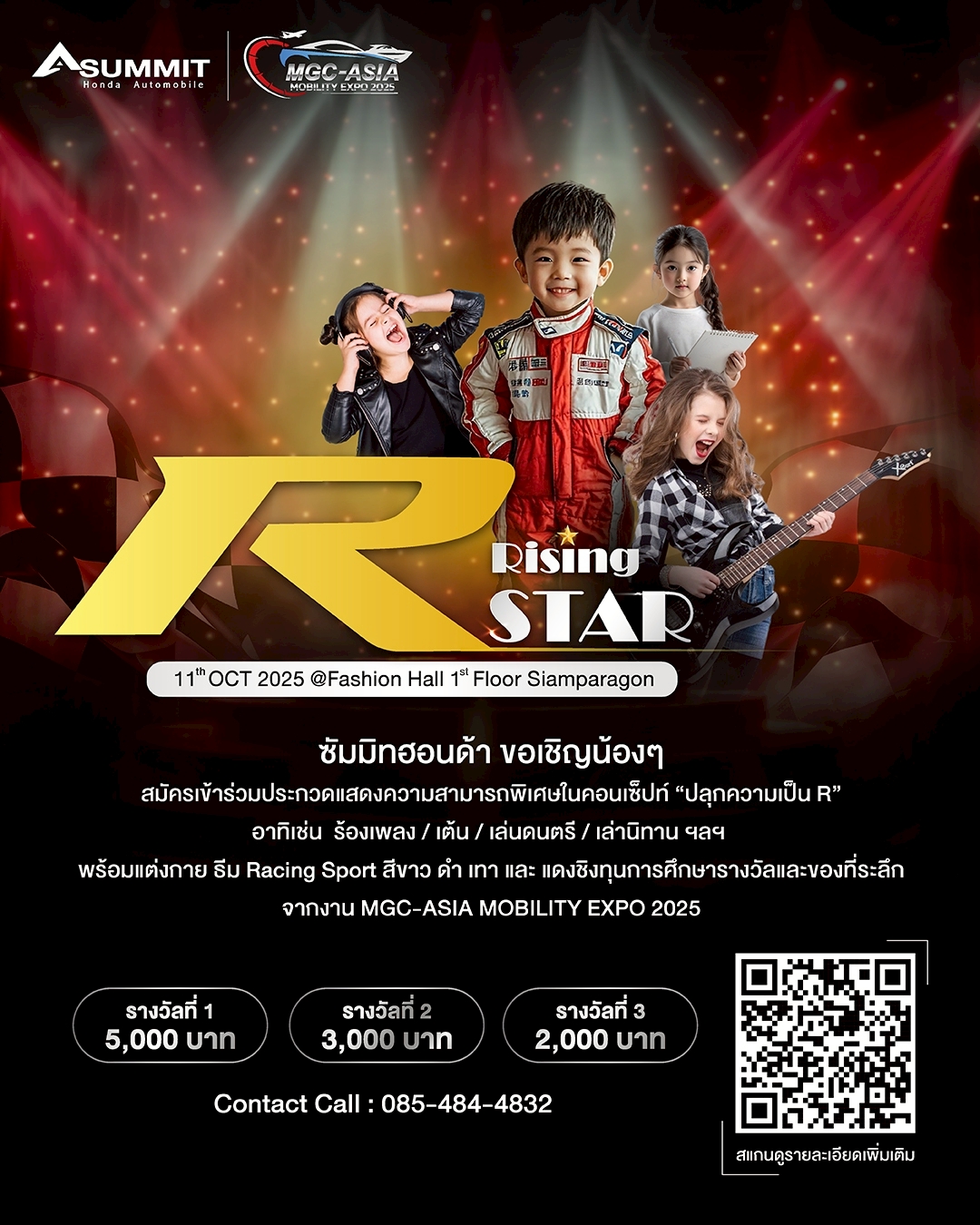 ซัมมิท ฮอนด้า ออโตโมบิล จัดแสดง 3 ยนตรกรรมไฮบริด ที่ผ่านการตกแต่งเพิ่มความสปอร์ตด้วยสติ๊กเกอร์ ‘R’ และชุดแต่ง Modulo รอบคัน คือ ACCORD e:HEV RS, CR-V e:HEV RS และ CIVIC e:HEV RS พร้อมชื่นชมความน่ารักสดใสของน้องๆ กับการประกวดความสามารถพิเศษในช่วงกิจกรรม ‘Rising Star’