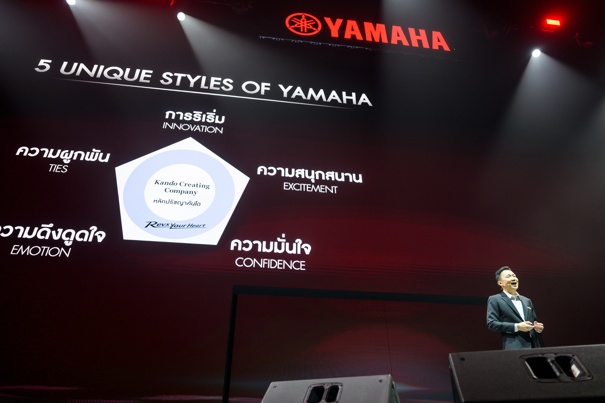 โดยทั้ง 3 กลยุทธ์หลักนี้ ยามาฮ่าจะดำเนินการควบคู่กับการทำตลาดเชิงไลฟ์สไตล์ นำเสนอทั้งสินค้าใหม่ กิจกรรมทางการตลาด และประสบการณ์ที่หลากหลายให้กับลูกค้า พร้อมยกระดับการบริการ 3S (Sales, Service, Spare Parts) เพื่อสร้างความพึงพอใจสูงสุด ตามปรัชญา KANDO ของยามาฮ่า”