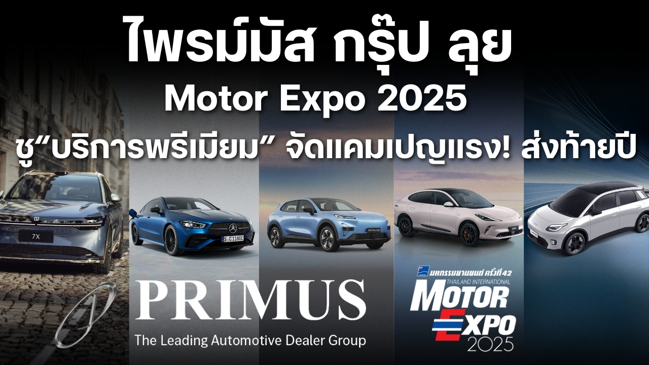 ไพรม์มัส กรุ๊ป ลุยศึก Motor Expo ชู “บริการพรีเมี่ยม” ผนึก 5 แบรนด์รถชั้นนำ อวดโฉมรถไฮไลท์พร้อมแคมเปญแรง! ส่งท้ายปี ส่วนลด 1.29 ล้านบาท, ฟรี! ดอกเบี้ย, โปรช่วยผ่อน 1 แสนบาท และสิทธิพิเศษอีกมากมาย เริ่มเลย! วันนี้ ที่โชว์รูมในกลุ่มของ ไพรม์มัส ทุกสาขา