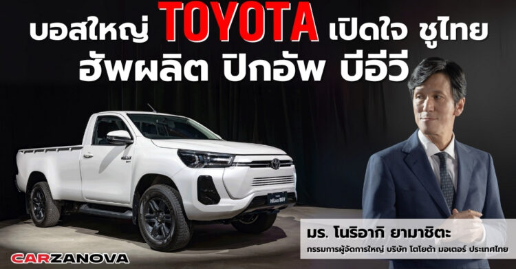 นอกจากนี้ในแผนปีนี้โตโยต้าจะเริ่มผลิตรถ EV ในประเทศไทย เป็นกระบะไฮลักซ์ BEV รุ่นแรกที่เลือกกระบะก็เพราะว่า ใช้โลคอล คอนเทนต์สูงมากปัจจุบันประมาณ 94% ซึ่งน่าจะมีโอกาสก้าวไปสู่เนชั่นแนลคาร์ของเราได้ ซึ่งเป็นความภาคภูมิใจ ส่วนในอนาคตก็น่าจะมีรุ่นอื่นๆ เพิ่มเติมเข้ามา