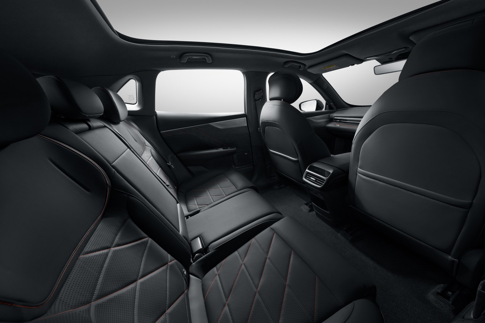 จุดที่ S05 เหนือกว่าคู่แข่งญี่ปุ่นในกลุ่ม xEV คือเรื่องของระยะฐานล้อ ในขณะที่เจ้าตลาดไฮบริดให้ระยะฐานล้อมาเพียง 2,600 – 2,640 มม. แต่ S05 ฟาดกลับด้วยตัวเลข ถึง 2,880 มม. ซึ่งตัวเลขนี้ไม่ได้มีไว้โชว์สวยๆ แต่หมายถึงพื้นที่วางขาด้านหลังที่กว้างขวางระดับรถยุโรปรุ่นใหญ่ สามารถนั่งเหยียดขาได้สบายโดยไม่รู้สึกอึดอัด ซึ่งเป็นจุดอ่อนที่แฟนๆ xEV ญี่ปุ่นบ่นกันบ่อยๆ แม้แต่ในกลุ่ม EV ด้วยกันอย่าง BYD ATTO 3 หรือ AION V ก็ยังต้องยอมสยบให้ความยาวฐานล้อของ S05
