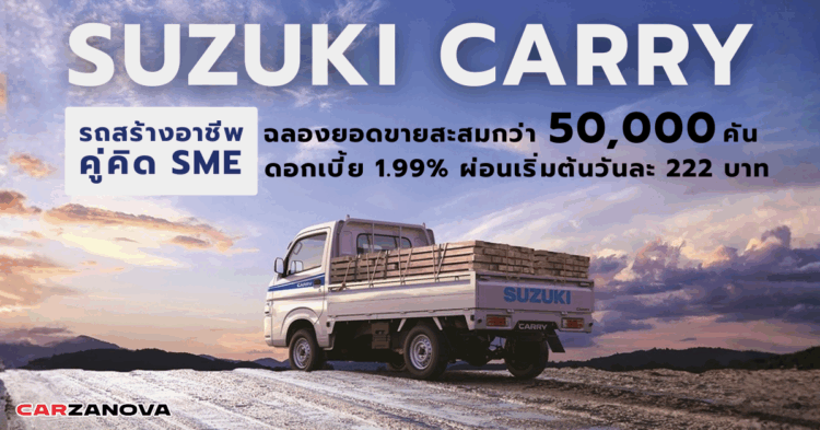 ตั้งแต่แนะนำ SUZUKI CARRY ออกสู่ตลาดประเทศไทย นับเป็นรถกระบะเพื่อการพาณิชย์ขนาดเล็ก ที่ได้รับการตอบและความเชื่อมั่นจากผู้บริโภคและกลุ่มธุรกิจ SME ว่าสามารถตอบโจทย์การใช้งานได้หลากหลาย คุ้มค่า คุ้มราคา เพราะเป็นรถที่ถูกออกแบบมาให้มีความยืดหยุ่นในการใช้งานสูง พร้อมสำหรับการดัดแปลงและพัฒนาต่อยอดให้เข้ากับทุกแนวทางของชีวิตและทุกรูปแบบธุรกิจ ความอเนกประสงค์และความคุ้มค่าในการลงทุน ทำให้ SUZUKI CARRY เป็นทางเลือกที่เหมาะสมอย่างยิ่งสำหรับผู้ที่ต้องการเริ่มต้นธุรกิจด้วยเงินลงทุนไม่มาก ด้วยอัตราการผ่อนชำระที่เข้าถึงได้ง่าย ผู้ประกอบการทั้งรายย่อยและรายใหญ่จึงสามารถเป็นเจ้าของธุรกิจได้ทันที