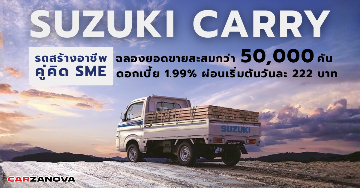 ตั้งแต่แนะนำ SUZUKI CARRY ออกสู่ตลาดประเทศไทย นับเป็นรถกระบะเพื่อการพาณิชย์ขนาดเล็ก ที่ได้รับการตอบและความเชื่อมั่นจากผู้บริโภคและกลุ่มธุรกิจ SME ว่าสามารถตอบโจทย์การใช้งานได้หลากหลาย คุ้มค่า คุ้มราคา เพราะเป็นรถที่ถูกออกแบบมาให้มีความยืดหยุ่นในการใช้งานสูง พร้อมสำหรับการดัดแปลงและพัฒนาต่อยอดให้เข้ากับทุกแนวทางของชีวิตและทุกรูปแบบธุรกิจ ความอเนกประสงค์และความคุ้มค่าในการลงทุน ทำให้ SUZUKI CARRY เป็นทางเลือกที่เหมาะสมอย่างยิ่งสำหรับผู้ที่ต้องการเริ่มต้นธุรกิจด้วยเงินลงทุนไม่มาก ด้วยอัตราการผ่อนชำระที่เข้าถึงได้ง่าย ผู้ประกอบการทั้งรายย่อยและรายใหญ่จึงสามารถเป็นเจ้าของธุรกิจได้ทันที