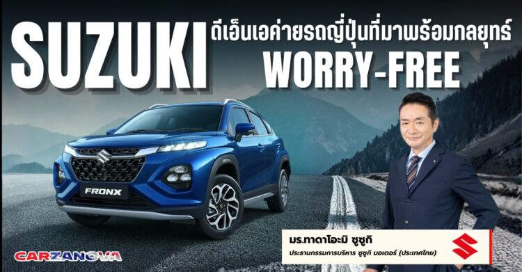 เที่ยวนี้ต้องบอกว่าไม่ธรรมดา เพราะมาพร้อมกับกลยุทธ์ “Worry-Free” โดยมุ่งเน้นนำเสนอความน่าเชื่อซึ่งเป็น DNA ของค่ายรถยนต์ญี่ปุ่น ที่ตั้งใจยกระดับบริการหลังการขายเพื่อสร้างความมั่นใจให้กับลูกค้าอย่างแท้จริง ต่อจากนี้คือบทสัมภาษณ์บอสใหญ่ “ทาดาโอะมิ ซูซูกิ” ประธานกรรมการบริหาร ซูซูกิ มอเตอร์ (ประเทศไทย)