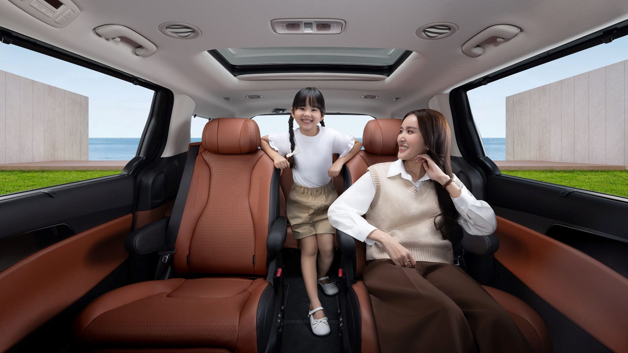 สำหรับเบาะที่นั่งของคนขับในรุ่น The new Kia Carnival HEV 7-seat Luxury ยังได้ติดตั้งระบบจดจำตำแหน่งเบาะนั่งและระบบ Welcome Seat สำหรับผู้ขับ เบาะนั่งคู่หน้าและเบาะนั่งแถวที่สองมาพร้อมระบบระบายอากาศและระบบอุ่นเบาะ สำหรับเบาะผู้โดยสารแถวสองเป็นแบบ Relaxation Seat ที่เปลี่ยนทุกการเดินทางให้เป็นความสะดวกสบายระดับเฟิร์สคลาสด้วยฟังก์ชันปรับเอนนอนที่สามารถปรับระดับได้เต็มรูปแบบ พร้อมเบาะรองขาแบบปรับไฟฟ้า มีโหมด One-touch Relaxation ที่สั่งงานด้วยการกดเพียงครั้งเดียวมอบความสบายให้กับผู้นั่งได้อย่างง่ายดาย สำหรับรุ่น The new Kia Carnival HEV 7-seat Premiumเบาะนั่งแถวสองเป็นเบาะแบบ Captain Seats ที่สามารถถอดออกได้เพื่อเพิ่มความอเนกประสงค์ในการใช้งาน และยังสามารถปรับเปลี่ยนตำแหน่งให้เป็นแบบนั่งหันหน้าเข้าหากันได้ ให้สมาชิกในครอบครัวได้มีปฏิสัมพันธ์กันได้ตลอดทริป พร้อมกันนี้ The new Kia Carnival HEV 7-seater ทั้งสองรุ่นได้รับการปรับให้มีพื้นที่ทางเดิน (Walkthrough access) ที่เอื้อต่อการเข้า-ออกเบาะหลังได้สะดวกยิ่งขึ้นสำหรับสมาชิกครอบครัวทุกคน โดยเฉพาะเด็กและผู้สูงอายุ นอกจากนี้ ด้วยจุดยึดสําหรับติดตั้งเบาะนั่งสําหรับเด็ก (ISOFIX) ที่มีให้ในตำแหน่งที่นั่ง 4 ตำแหน่งเป็นมาตรฐาน (2 จุดบนเบาะนั่งแถวสอง และอีก 2 จุดบนเบาะแถวสาม) ซึ่งช่วยให้สามารถติดตั้งเบาะนั่งสำหรับเด็กในตำแหน่งต่าง ๆ ได้อย่างยืดหยุ่น เสริมความปลอดภัยและความสะดวกเพื่อตอบสนองความต้องการของครอบครัวได้ดีที่สุด
