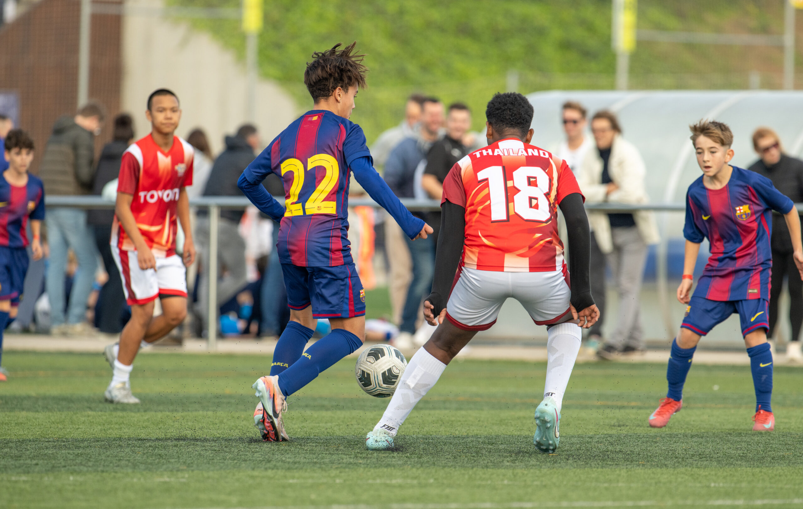 ในปีนี้ ทีมเยาวชนไทย TJFC U14 ได้เดินทางสู่ประเทศสเปนเพื่อเข้าร่วมการแข่งขันฟุตบอลเยาวชน 2 รายการใหญ่ ได้แก่ “Surf Cup Tournament 2025” และ “Cruyff Football Tournament 2025” ซึ่งเป็นเวทีรวมทีมระดับชั้นนำทั้งจากยุโรปและอเมริกา ทัวร์นาเมนต์ทั้งสองรายการนับเป็นโอกาสล้ำค่าที่ทำให้เด็กไทยได้สัมผัสการแข่งขันฟุตบอลระดับโลก ที่มีมาตรฐานระดับสากล โดยในรายการ Surf Cup Tournament 2025 ทีม TJFC ได้เข้าร่วมแข่งขันและผ่านเข้าสู่รอบ 8 ทีมสุดท้าย ถือเป็นประสบการณ์การแข่งขันที่ช่วยยกระดับทักษะความมั่นใจ และความเข้าใจในเกมของเยาวชนไทยได้อย่างเด่นชัด