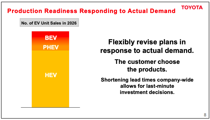 ส่วนนโยบายนี้จะส่งผลต่อโรงงานในประเทศไทยด้วยหรือไม่ ในระยะยาวมีความเป็นไปได้สูงที่จะขยายการปรับสายการผลิตไปทั่วโลกเพื่อรองรับรถยนต์ที่มีความหลากหลายด้านพลังงานให้มีประสิทธิภาพทั้งการผลิตการขายร่วมถึงบริการหลังการขายด้วย