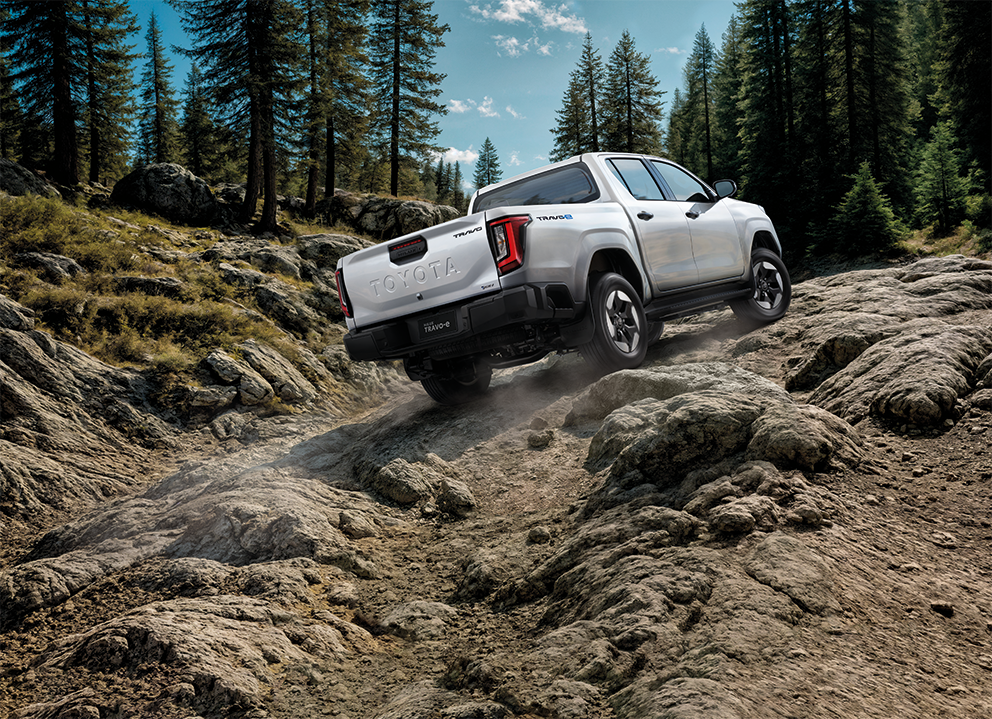กระบะไฟฟ้ารุ่นแรกของ HILUX ที่ผสมผสานความแข็งแกร่งตามแบบฉบับ Hilux เข้ากับระบบขับเคลื่อนไฟฟ้า เพื่อสนับสนุนแนวคิด Multi-Pathway โดย HILUX TRAVO-eมาในรุ่น Double Cab 4TREX เท่านั้น