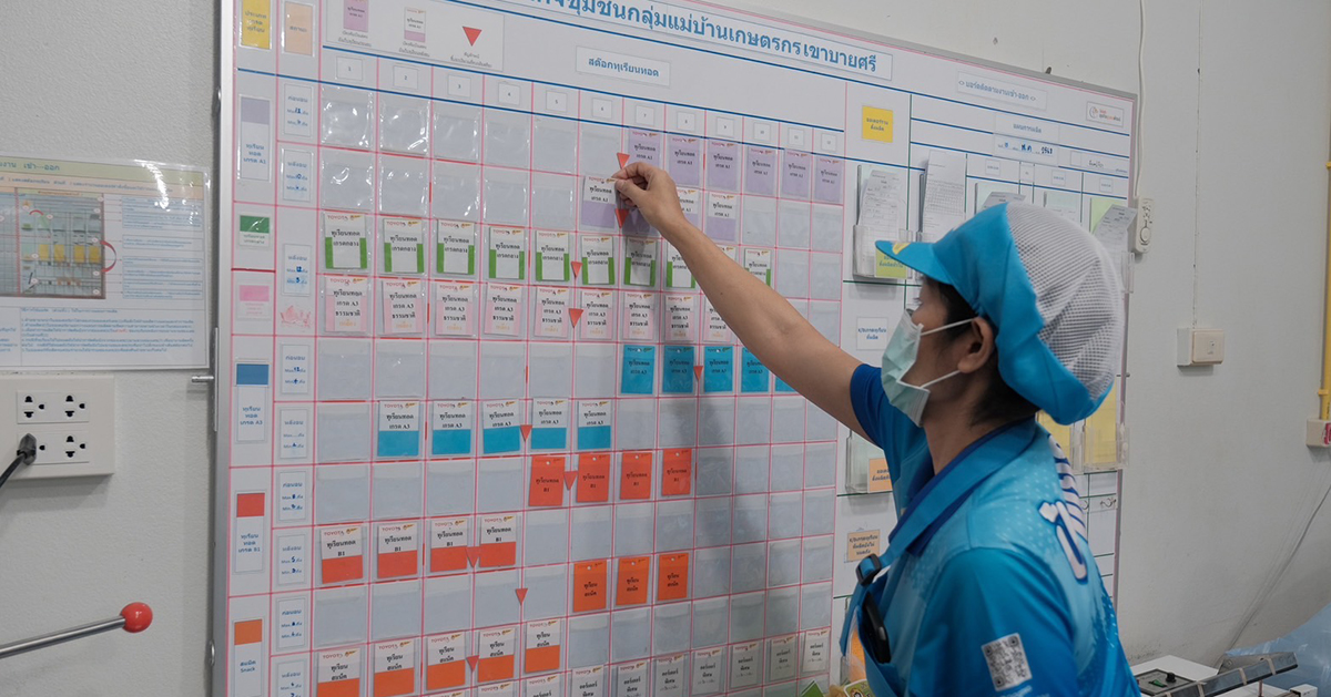 จากเดิมที่เคยประสบปัญหาเรื่องออเดอร์ตกค้างและการบรรจุล่าช้า เนื่องจากมีออเดอร์ลูกค้าที่ส่งมาจากฝ่ายขายเป็นจำนวนมากในแต่ละวัน โดยใบออเดอร์จะถูกนำมาวางปะปนกัน ไม่รู้ลำดับออเดอร์ก่อน-หลัง ขาดการวางแผนการบรรจุที่ดี ทางโตโยต้าจึงได้แนะนำการปรับปรุงโดยนำระบบควบคุมผ่านการมองเห็น หรือ Visual Control Board มาจัดทำเป็นบอร์ดวางแผนการบรรจุสินค้าให้พนักงานทุกคนได้รับทราบ โดยใบออเดอร์จากฝ่ายขายทุกใบ จะถูกนำมาเรียงลำดับในกล่องที่บอร์ดวางแผนการบรรจุ ช่วยให้ไม่เกิดสินค้าตกค้างจากออเดอร์ตกหล่นหรือหลงลืม พนักงานสามารถทราบยอดออเดอร์และการส่งมอบในแต่ละวัน พร้อมทั้งสื่อสารและติดตามความคืบหน้าของงานในกระบวนการของแต่ละคนได้ ช่วยเพิ่มประสิทธิภาพในการติดตามงานและสามารถส่งสินค้าให้ลูกค้าได้ตรงเวลา 100%