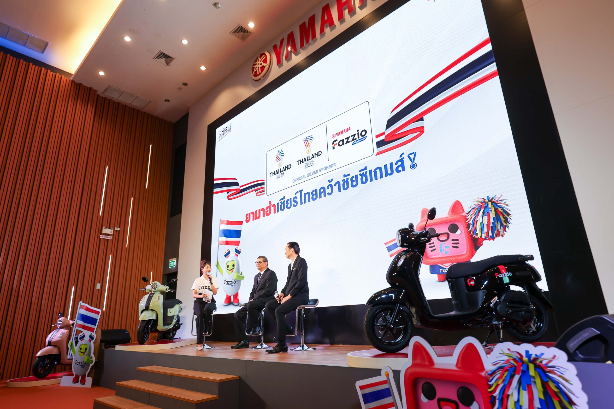 สำหรับท่านที่เดินทางไปชมและเชียร์นักกีฬาไทยติดขอบสนามราชมังคลาฯ ระหว่างวันที่ 9 – 20 ธันวาคม 2568 ยามาฮ่ายังได้เตรียมบูธ YAMAHA FAZZIO สุดยูนีคให้ร่วมสนุกใน FAN ZONE เพื่อให้แฟนกีฬาสามารถร่วมสนุกกับยามาฮ่า ฟาซซิโอ้ ไฮบริด และร่วม EXCLUSIVE MEET & GREET กับ YAMAHA THAILAND RACING TEAM, กิจกรรมของรางวัลลิมิเต็ดเฉพาะในงาน พร้อมเครื่องดื่ม และขนมเติมพลังตลอดวัน