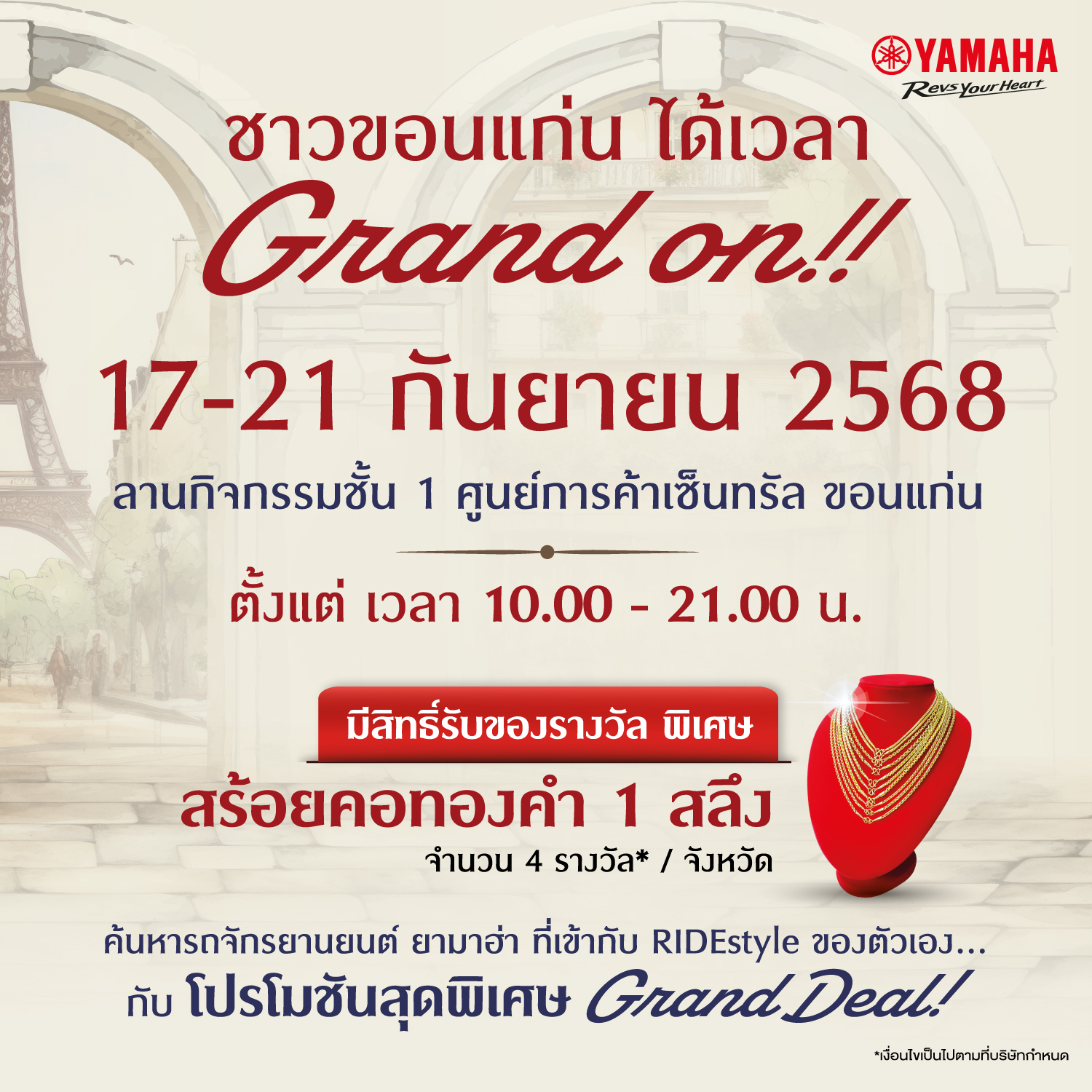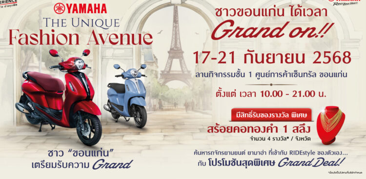 ไทยยามาฮ่ามอเตอร์ ตอกย้ำภาพลักษณ์ความเป็นผู้นำเทรนด์ เชิญชวนชาวขอนแก่นมาร่วมสัมผัสประสบการณ์การขับขี่ที่สะท้อนตัวตนและไลฟ์สไตล์ของลูกค้า ในกิจกรรม YAMAHA THE UNIQUE FASHION AVENUE 2025 ระหว่างวันที่ 17 – 21 กันยายน 2568 ณ ศูนย์การค้าเซ็นทรัล ขอนแก่น